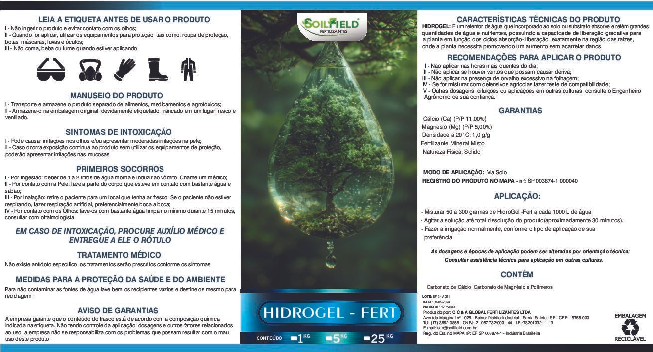 – Misturar 50 a 300 gramas de HidroGel -Fert a cada 1000 L de água- Agitar a solução até total dissolução do produto(aproximadamente 30 minutos).- Fazer a irrigação normalmente, conforme o tipo de aplicação de sua